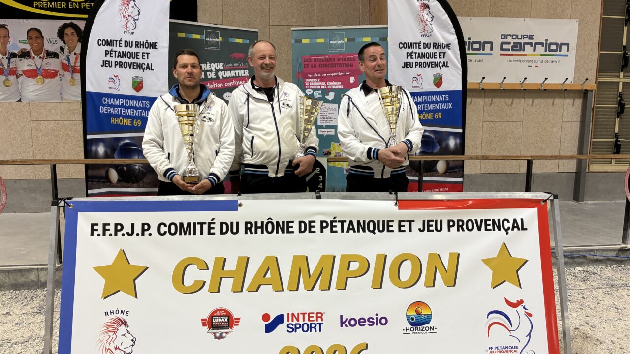 Champion ANDRIANTSEHENO Christian SARRIO Christophe N'DIAYE François Petanque Bron Terraillon Vice-champion DARODES Jérémy MOLINAS Joseph FELTAIN Richard Pétanque Lyon Canuts...
